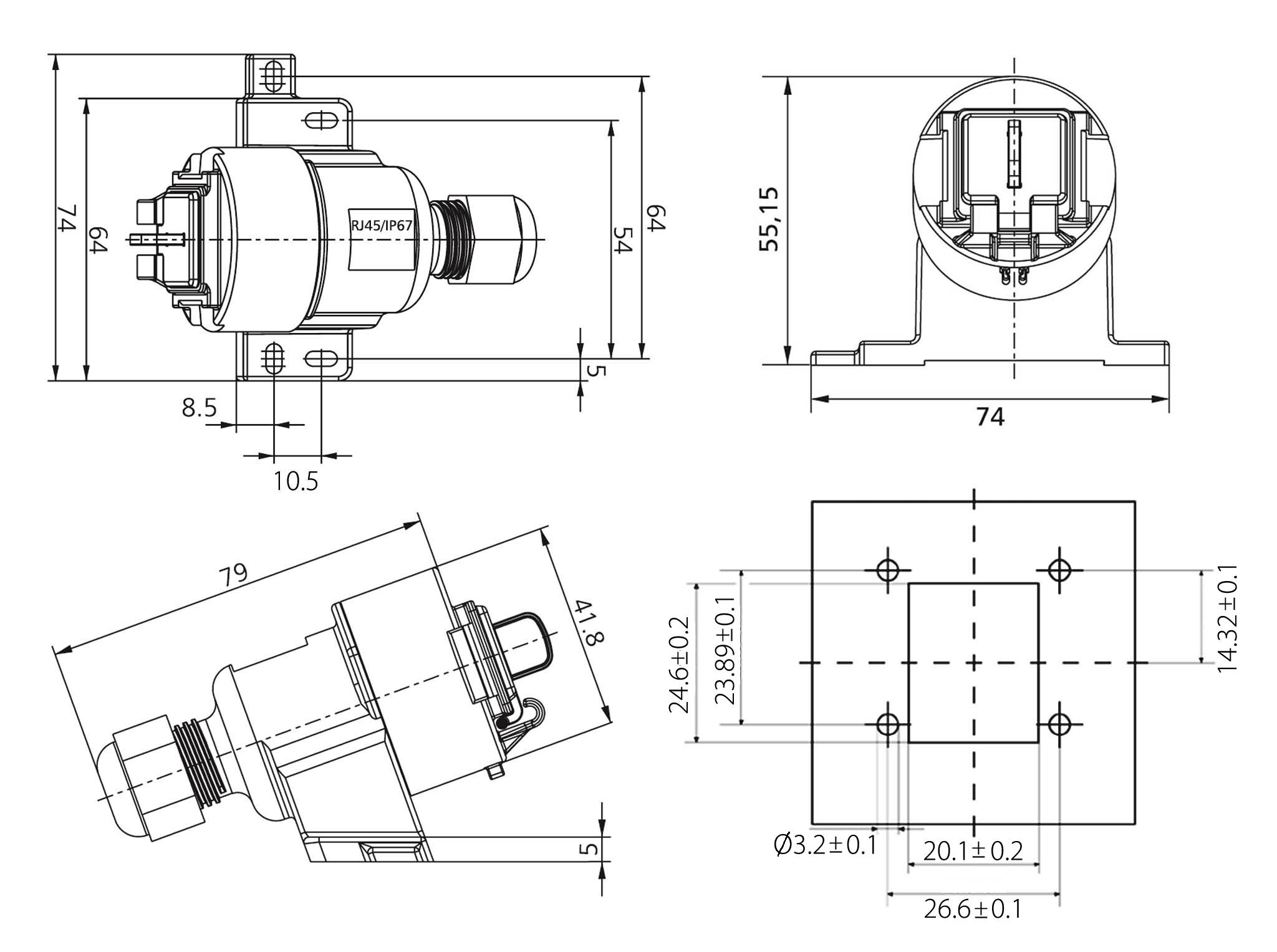 In order to ensure a secure data transmission, the compatible components offer a large 360˚ braid connection that results in excellent EMC properties. The covers that are permanently attached to the casings prevent water, dust, dirt and other contaminants from entering the RJ45 jack when unmated. Usable in connection with IP67 or standard RJ45 patch cords in different lenghts.